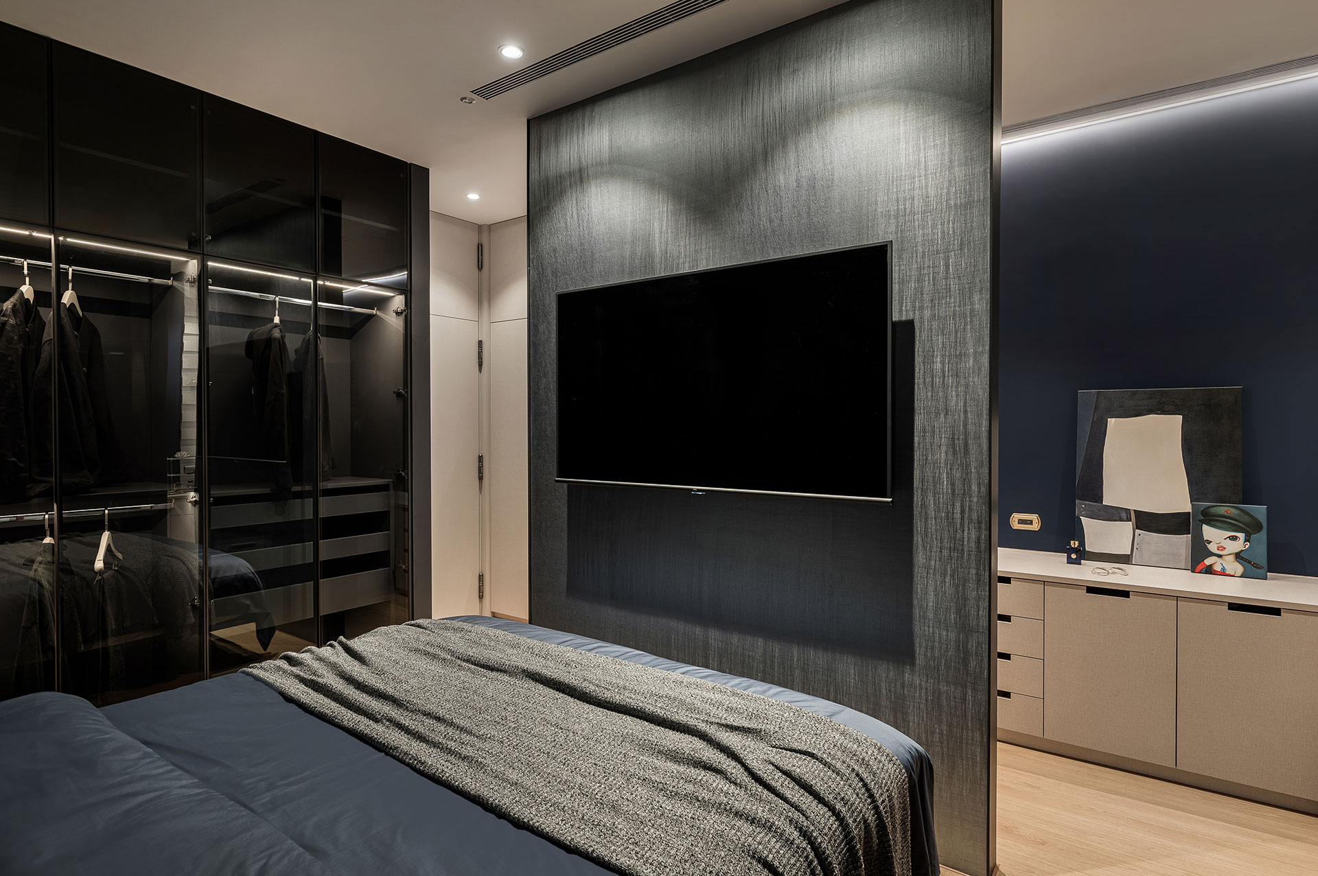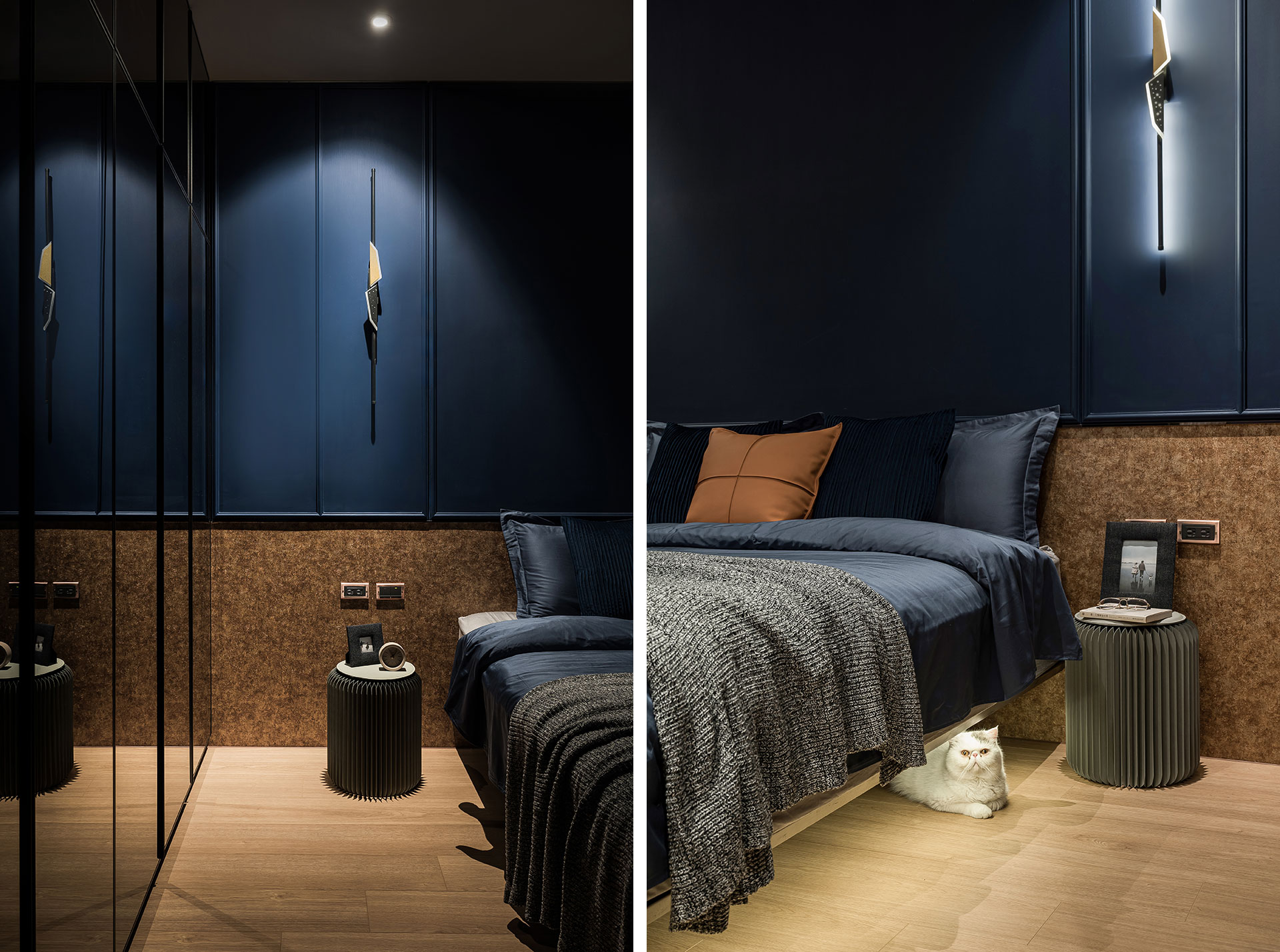 有別於白底、小清新的風格,此案業主的個人特質,男主海派、大膽,女主細膩、精緻,分別代表了客廳與臥室空間。